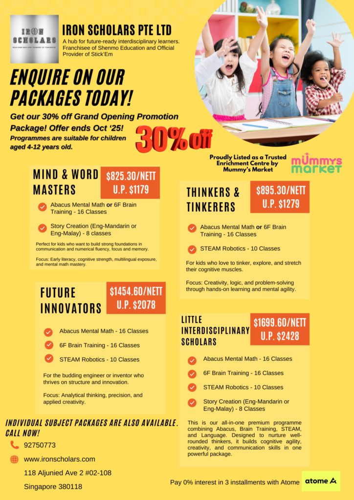 We are a proud franchisee of Shenmo Education, a global leader in Abacus and Full Brain Training for children. We are also the official provider of Stick’Em, making STEAM learning easy and accessible for any child.